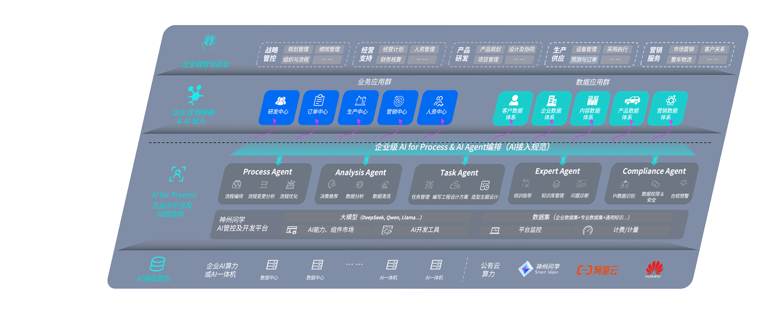 端到端的一站式AI工作空间深度融合了从企业战略规划到日常经营的全流程业务板块,,,定向解决车企内部领域多、、、、部门多、、、链条长、、、、场景碎片化等难题,,,,支持车企快速构建以AI为核心的生产力写作体系,,,,实现任务执行与AI能力的无缝集成与交互